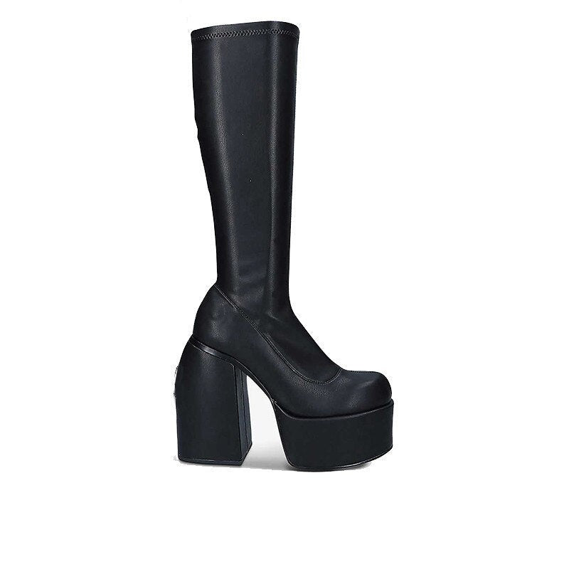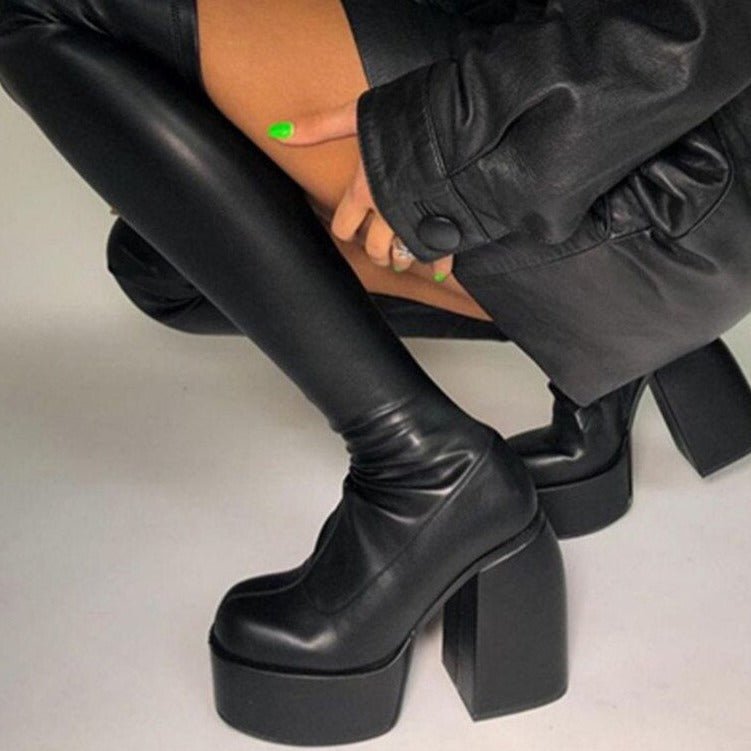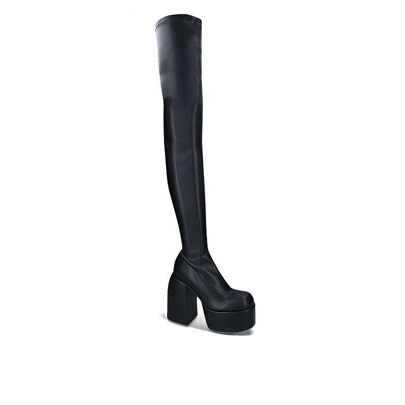 Women Thick Heels Platform Ankle Boots Stretch Knee High Heels
