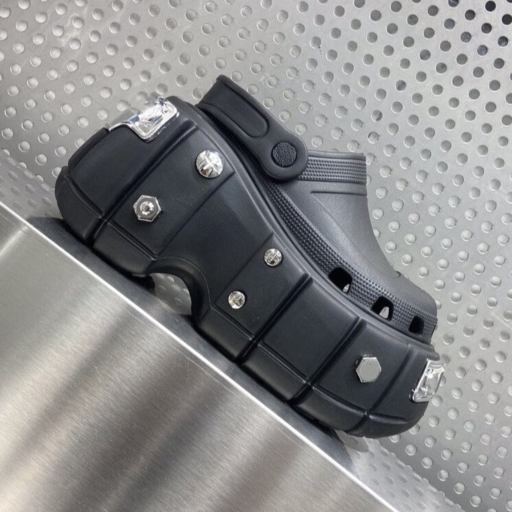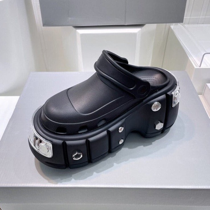 Women Thick Sole Platform Sandals Design Metal Rivet Hollow Out Shoes