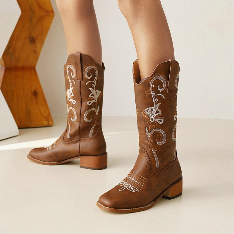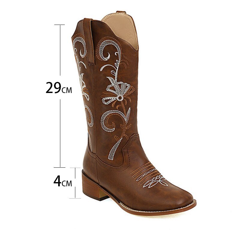 Women's Embroidered Chunky Heel Platform Boots
