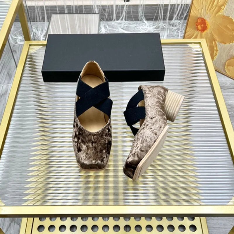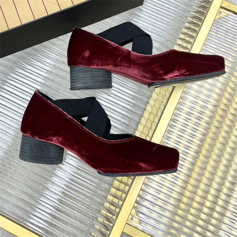 Women's High Heels Square Head Thick Heel Casual Single Shoes