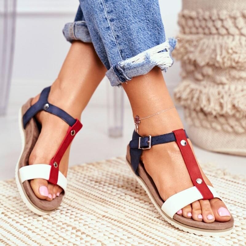 Women's Large Size Sandals 2021 Summer New College Style Low Heel Wedge Casual Sandals Fashion Ladies Sandals Footwear 35-43