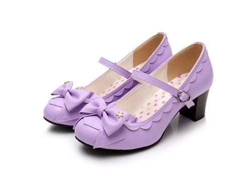 Women's Mary Jane Pumps - Sweet Bow High Heel Lolita Dress Shoes