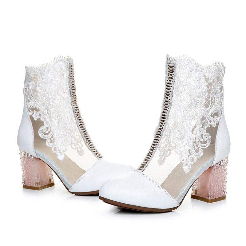 High Heels Round Toe Mid Calf Women Boots Shoes Plus Size
