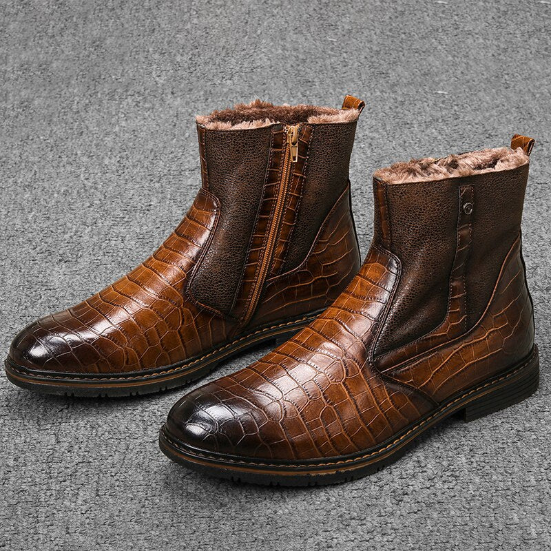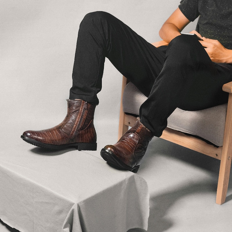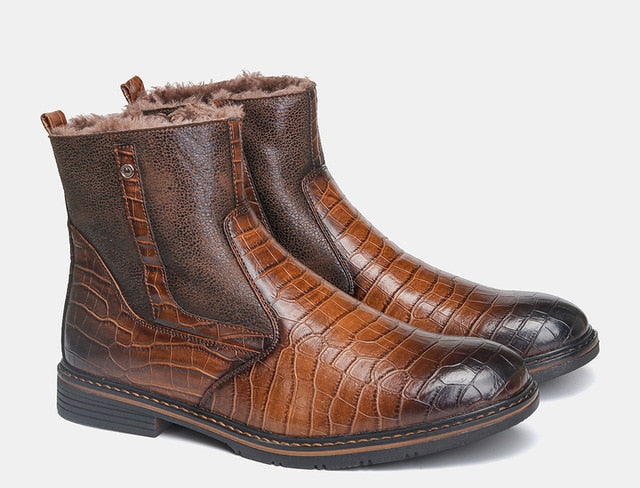 Leather Men Winter Boots Size 40-45 Handmade Warm Men Winter Shoes