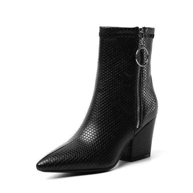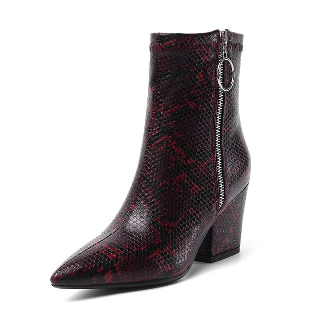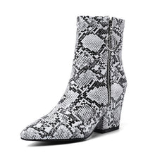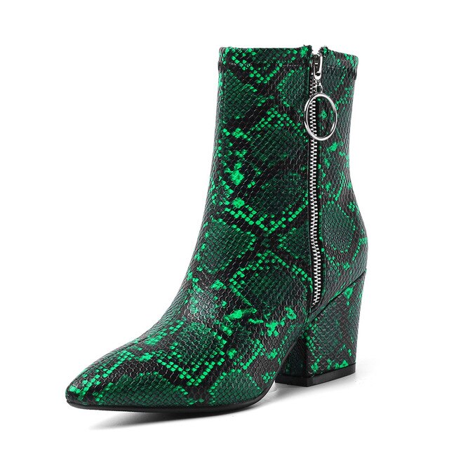 Snake Print Yellow Green White High Heels Womens Shoes Zipper Fashion Retro Gothic Ankle Boots Female Winter Bootie 2019