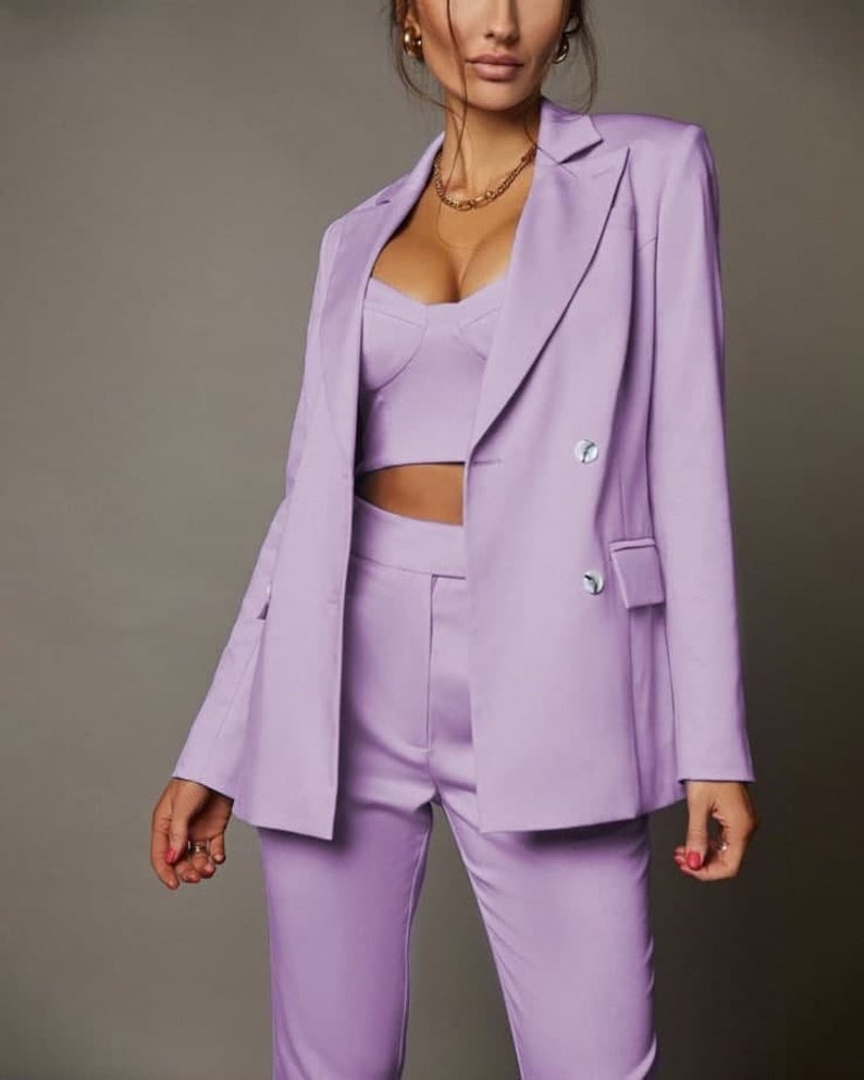 Pocket Blazer Fashion Elegant Loose Office Lady Daily Jacket