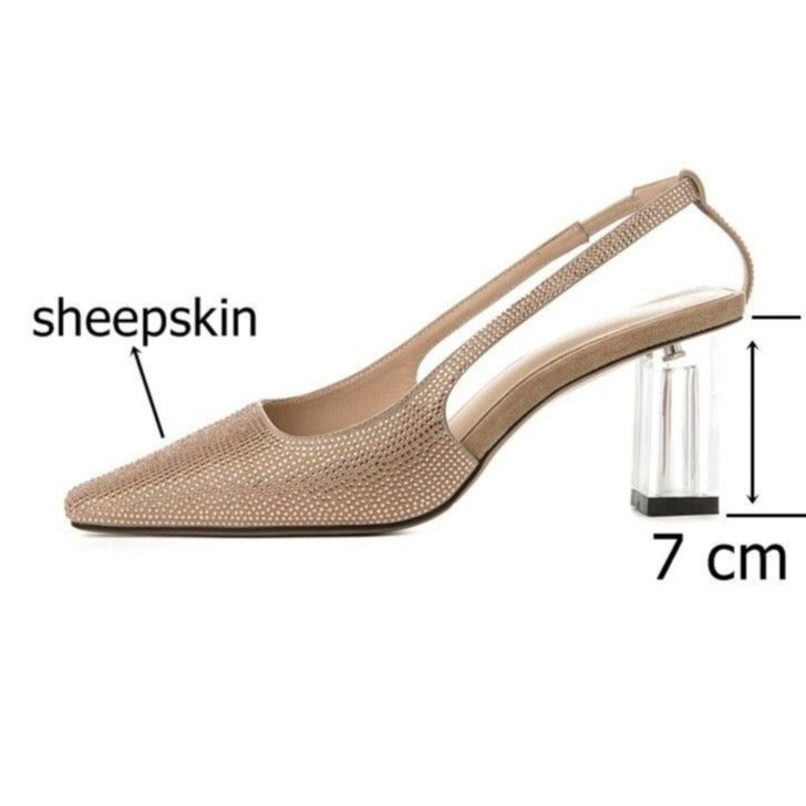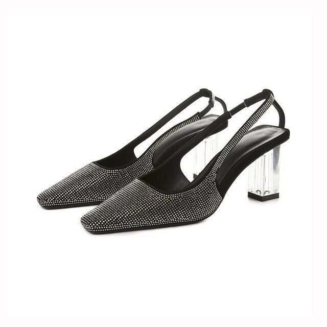 spring new fashion sexy women pumps outside high heels sheepskin crystal square toe women shoes size 34-39